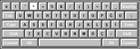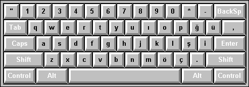 Στη διπλανή σελίδα παρουσιάζεται η σειρά των τουρκικών γραμμάτων στο πληκτρολόγιο σύμφωνα με τη διάταξη Q, που είναι η πιο διαδεδομένη.